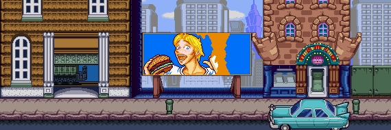 Other deaths are equally hilarious. One occurs by slipping over a skateboard that shoots upwards off-screen. The skateboard then flies back onto his head if you don’t make him “Look!” up in time. Another scenario is one where Pac-Man buys a hot-dog. A street cat will steal it, and Pac-Man will be sad. With this knowledge in hand, though (every time the screen reloads, all parameters reset), you shoot the cat right away. But this is one of those mistakes where the game trolls you, because when done too early, without reason, the cat will screech, run at Pac-Man and kill him in a huge star-filled dust-cloud fight.